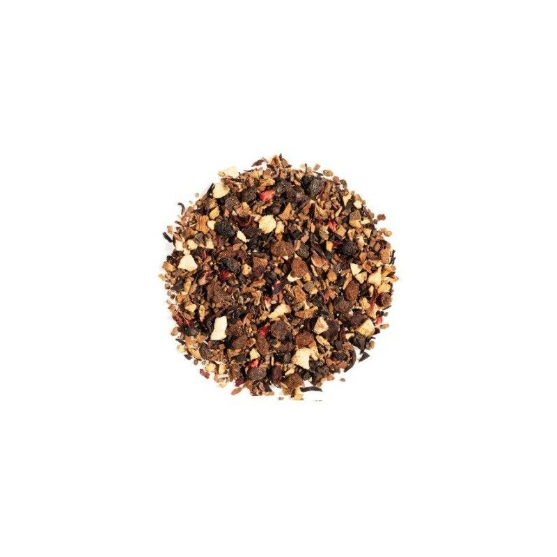 L'infusion Glög contient des raisins*(15%), de l'hibiscus*(14%), du cassis*(11%), de la cannelle*, des écorces de citron*, de la cardamone*, de la réglisse*, des arômes d'amande, de cannelle et de cassis. Sans théine, elle se boit toute la journée et tout l'hiver !