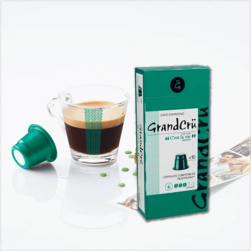 Toujours plus délicieux et plus raffinés, les cafés proposés par UCC Coffee raviront les fins connaisseuses comme les amateurs. Avec le capsule Grand Crü C’est la vie, arômes, saveur et fraîcheur sont au rendez-vous dans chacune de vos tasses. Expresso d’intensité 6, ce café se compose d’un mélange de pur Arabica en provenance de trois continents. Il est disponible par boite de 10 capsules, lesquelles passent parfaitement dans les machines Nespresso.