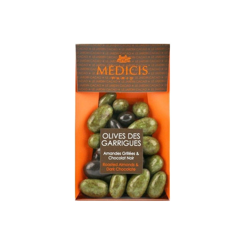Pour les amateurs de chocolat noir adoucis avec l'amende grillée une merveille à la finition verte et noire.
