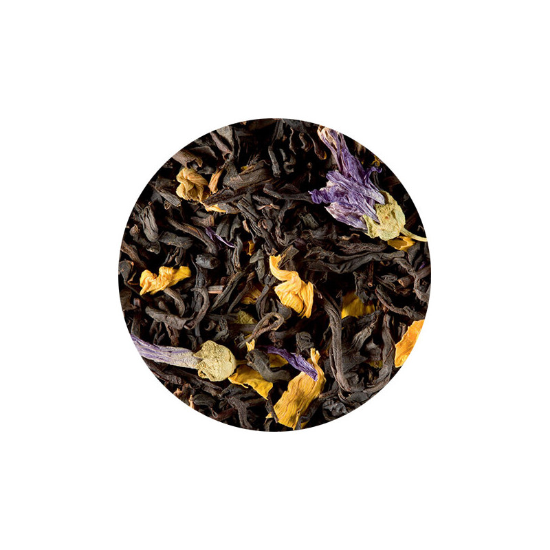 Pour couronner le tout, il est garni de pétales d'hélianthe et de fleurs de mauve. Ce qui lui confère un visuel charmeur annonçant un haut niveau de qualité. Ce thé se distingue par sa liqueur de couleur orange cuivrée.