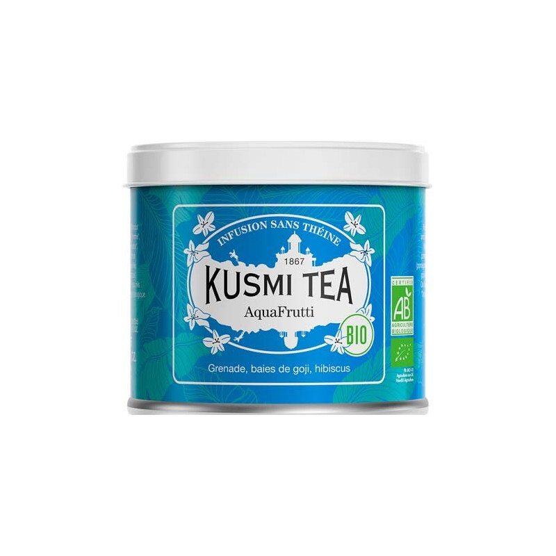 Consommable toute la journée, l'infusion sportive BIO de Kusmi Tea (LOV ORGANIC) est sans théine. Elle contient de l'hibiscus*(20%), de la grenade*(15%), des baies de Goji*(2%), de la pomme*, du cynorhodon*, du cassis, des arômes de grenade, de cassis et de groseille.