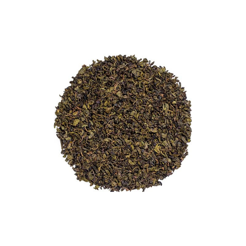 Un délectable thé vert de Chine dans sa version Gunpowder, avec l'adjonction de feuilles menthe nanah ou menthe spicata (en épis) et d'huile essentielle de menthe.