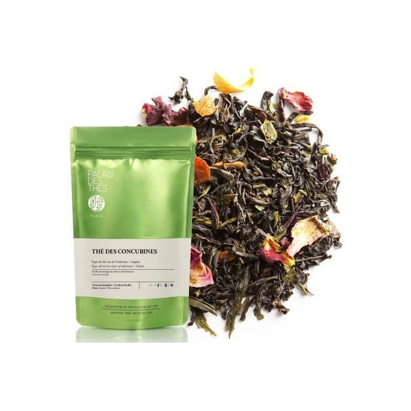 Le THÉ DES CONCUBINES est un mélange de thé vert et de thé noir au goût fruité, avec des notes de cerise, de vanille et de mangue.