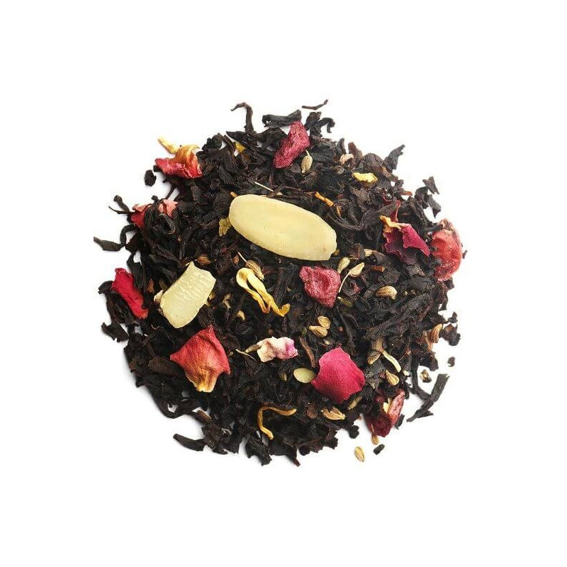 Le Thé des Gourmets est un thé noir parfumé. C'est une édition limitée qui fait son grand retour désormais en édition permanente. Pourquoi ce succès : il se compose de thé noir (Chine, Afrique, Inde) (82 %), d'éclats d'amandes (3%), de morceaux de cranberry (2%), d'anis, d'arômes (1% de cerise), de pétales de souci et de rose.
