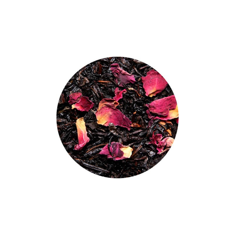 Le Thé Secret de Shéhérazade est une sélection de thé noirs avec des arômes d'amande, d'orange et de pêche. Il contient aussi des pétales de rose.