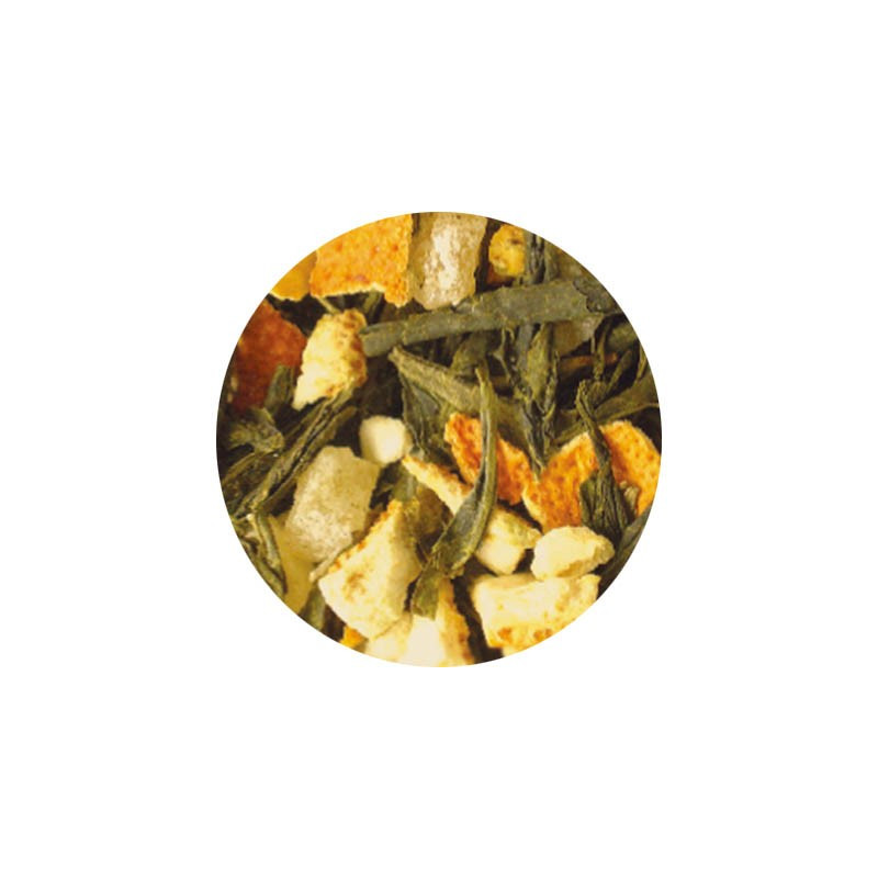 Le thé Sencha Floride est un thé vert Sencha aromatisé avec des écorces d'orange et des morceaux d'ananas.