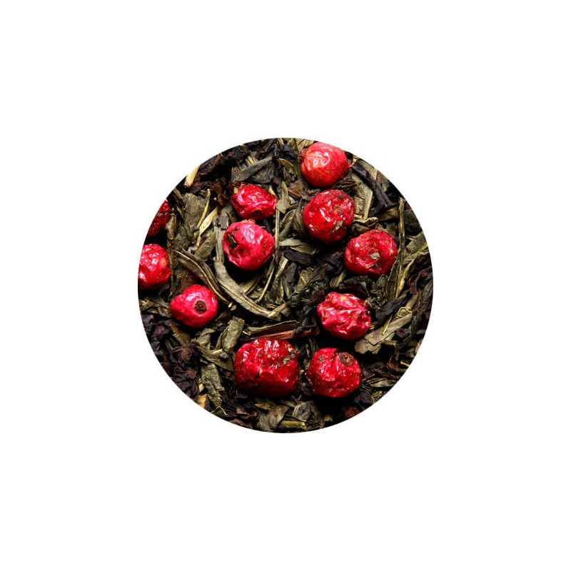 Le Thé Sencha Calida de la marque Compagnie Coloniale se compose d'un mélange de thé vert Sencha et de thé semi-fermenté Oolong. Il est aromatisé aux fruits rouges, à la vanille et contient des groseilles entières.